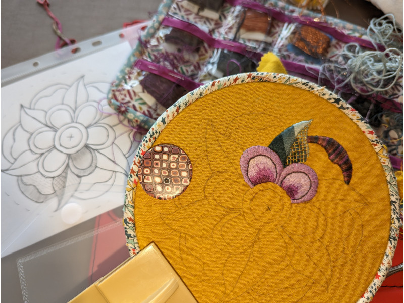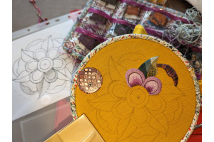 Bonjour, Votre tissu en lin Monaco, que je découvre, est tout simplement magnifique à broder. Les couleurs jaune et violet sont lumineuses. Le lin-coton Sevilla de Stoff est toujours aussi beau. Dommage que votre stock en fil de Stef Francis soit réduit. Je vous joint une photo de ma broderie en cours avec votre tissu. C'est un modèle de ma création.